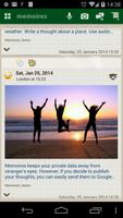 Memoires gives a way to quickly enter life moments, thought, memories or notes, capture photos, audio or insert images from gallery. Memoires automatically detects and attaches to a memo the location, addresses, weather and moon phases. It also accepts text and images from other apps.